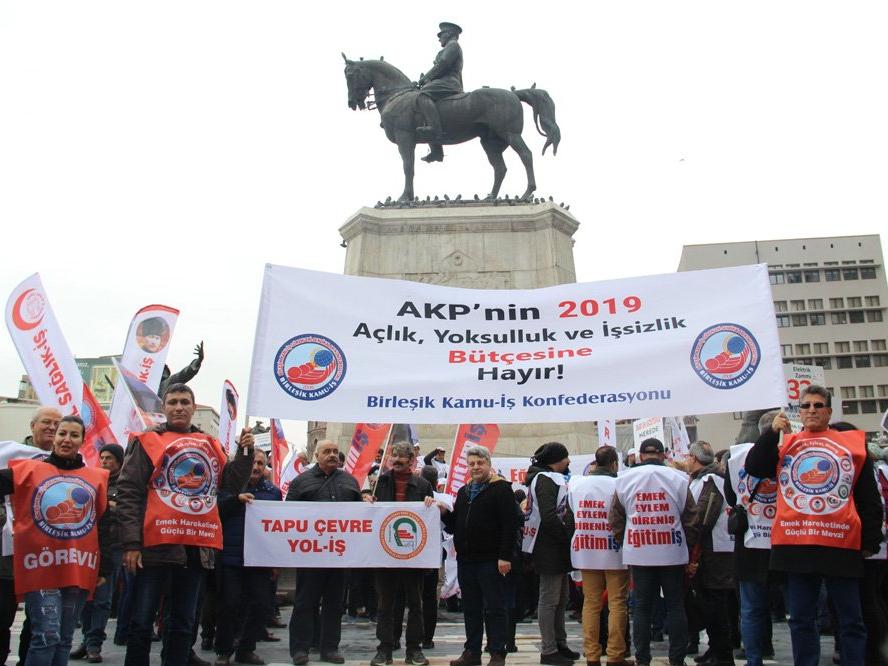 Birleşik Kamu-İş Konfederasyonu ve ona bağlı sendikalar, iktidarın 2019 bütçesini, Ankara'daki Ulus Atatürk Heykeli önünde gerçekleştirdikleri eylemle protesto etti.