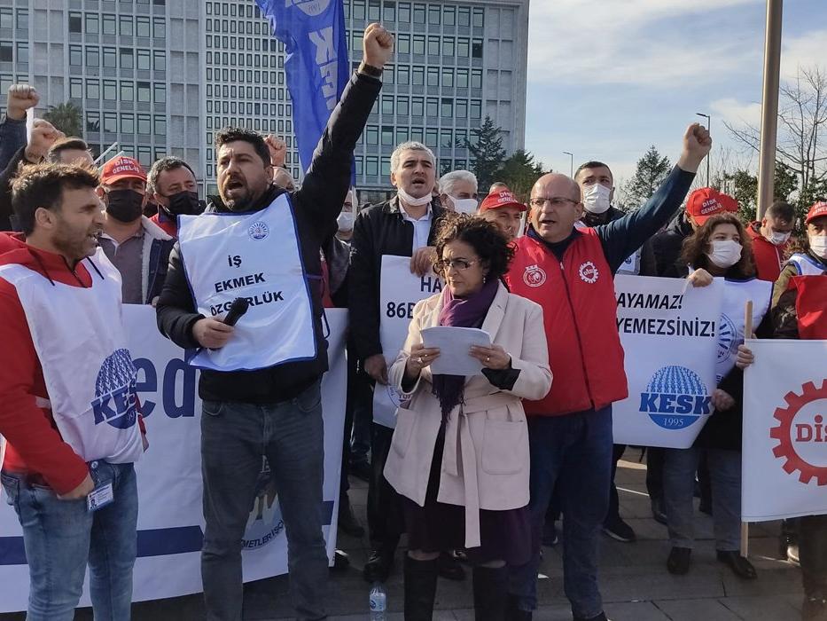 İBB’de terör bağlantılı kişilerin işe alındığına ilişkin iddialara sendikalardan tepki geldi. KESK ve DİSK üyelerince İBB önünde gerçekleştirilen destek açıklamasında “İBB’de çalışan emekçileri suçlu gibi gösteren 86 bin çalışanı zan altında bırakan sorumsuzca açıklamalar hem çalışanları hem kurumu itibarsızlaştırma girişiminden başka bir şey değildir” denildi. Eylemde “Ekrem İmamoğlu yalnız değildir” sloganları atıldı.