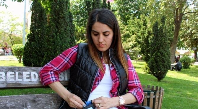 Samsun'da yaşayan evli ve 1 çocuk annesi Leyla Kaymak, 14 yaşındayken arkadaşının denizde yaptığı şaka sonrasında yaşadığı korkuyla diyabet hastalığına yakalandı. 14 yaşında hastalıkla tanışan ve o günlerde 40 kiloya kadar düşen Kaymak, 8 yıldır sensörlü insülün pampasını üzerinde 24 saat taşıyarak kullandığı belirterek, 'Hastalık bende bir arkadaşımın şakası üzerine oldu. Denizde yüzerken bana şaka yaptı. Başımı suya bastırdı, ben yüzeye çıkamayınca korkuyla 1 hafta içinde 40 kiloya düştüm. Hastalık korkuyla nüks etti. Altında yatan başka sebepler olabiliyormuş ama nüks etmesi için de korku ya da psikolojik sorunlar olması gerekiyormuş. Benimki de korkuyla ortaya çıktı. Böbrek için kontrole gittim. Tahlillerde şekerimin 500-550 olduğu ortaya çıktı ve teşhis konuldu. Ben 15 yıldır diyabet hastasıyım. Son 8 yıldır ise insülin pompası kullanıyorum. Bu cihazı 24 saat üzerimde taşımak zorundayım. Çünkü bana insülin veriyor' dedi.
