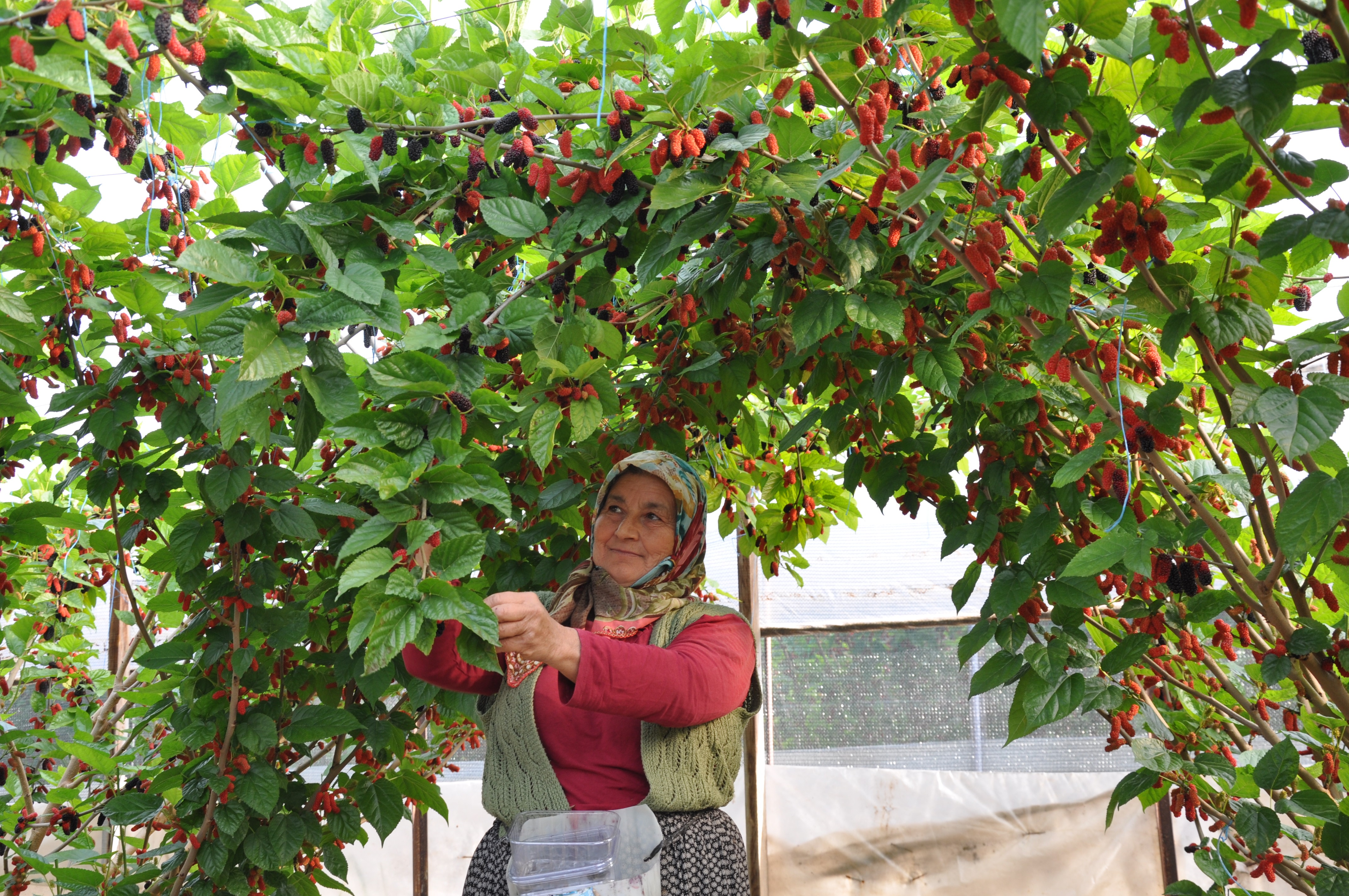Atik Mahallesi'ndeki serasında hasat yapan üreticilerden Erdoğan Metin de "Seramda yaklaşık 100 dut ağacım var. Ağaç başına ortalama 60 kilogram ürün elde ediyorum. 1 Mart'ta başladığım hasadı nisanın ilk haftasına kadar sürdürmeyi düşünüyorum." ifadelerini kullandı.