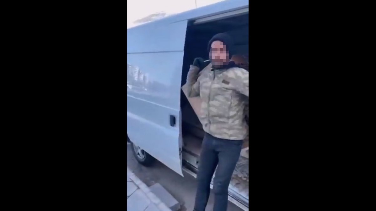 Onikişubat ilçesinde Binevler Kavşağı'na 46 ABP 954 plakalı minibüsü park eden yağmacı, marketten çalıp sırtına yüklediği çamaşır makinesini önünde Türk bayrağı olan beyaz minibüse yükledi. Videoya çekildiğini fark etmesine rağmen umursamayan yağmacı markete dönüp hırsızlık yapmaya devam etti.