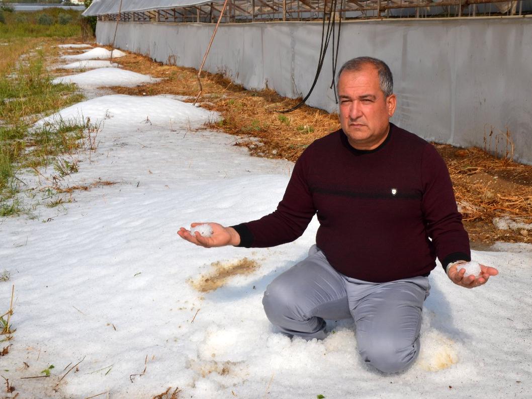 Serasının camı kırılan ve mahsulü zarar gören Veli Öztürk de "Sabah saat 06.00 civarında aniden fırtına çıktı ve dolu yağdı. Ben böyle bir şey görmedim. Sera camları ve biberler zarar gördü. Birer dönümlük 2 seramda zarar meydana geldi. Biberleri 1,5 ay önce dikmiştim" diye konuştu.