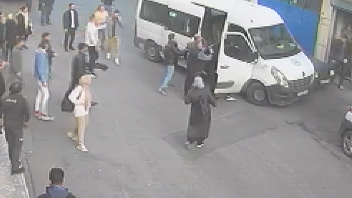 Saldırı anları bir iş yerinin güvenlik kamerasına saniye saniye yansıdı. Görüntülerde, bir gurubun servis minibüsüne saldırdığı görülüyor. Bu sırada hareket eden servis minibüsünün başka bir araca çarparak duruğu görülüyor. Görüntülerde ayrıca, saldırganların servis minibüsünden inen yolculara da saldırdığı görülüyor.
