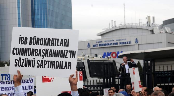 Özgür ALTUNCU -Taner YENER İSTANBUL, ( DHA) PLAKA tahdidi isteyen servisçiler eylem yaptı. Plaka sorununun çözümüyle ilgili Cumhurbaşkanı Erdoğan`ın kendilerine söz verdiğini ileri süren yaklaşık 500 servisçi esnafı bugün AKOM önünde toplandı. Grup "Plaka hakkımız söke söke alırız" sloganları atıp, "İBB bürokratları Cumhurbaşkanı`nın sözünü çarpıttı" yazılı dövizler taşıdı. 25 Mayıs 2015 tarihinde Cumhurbaşkanı Erdoğan, Sinan Erdem Kapalı Spor Salonunda gerçekleştirilen "Cumhurbaşkanı Türkiye Esnaf Buluşması" toplantısındaki konuşmasını banttan yayınlayan servisçiler adına açıklamayı İstanbul Servis Araçları Esnaf Odası Başkanı Hamza Öztürk yaptı.