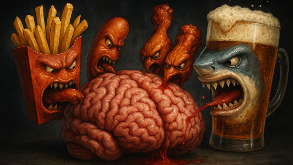Mangalda yanmış etler ya da aşırı kızartılmış yiyecekler, İleri Glikasyon Ürünleri (AGEs) adı verilen zararlı bileşikleri içerir. Bu maddeler beyinde oksidatif stres ve iltihaplanma tetikleyerek, Alzheimer gibi nörolojik hastalıklara zemin hazırlayabilir: "Tirbuşon tatlılar, közlenmiş etler ya da kızarmış pilav gibi yiyecekler zamanla beyinde plak oluşumuna neden olabilir."