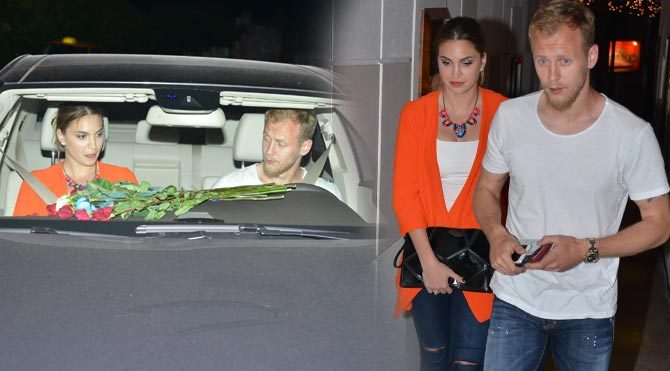 Çıkışta gazetecilerin kendilerini bekledikleri öğrenen ikili, bir süre içerde bekledikten sonra mekandan birlikte ayrıldılar. İkili araçlarına binecekleri sırada yanlarına gelen çiçekçinin elindeki tüm gülleri alan futbolcu romantik yanını göstermiş oldu.