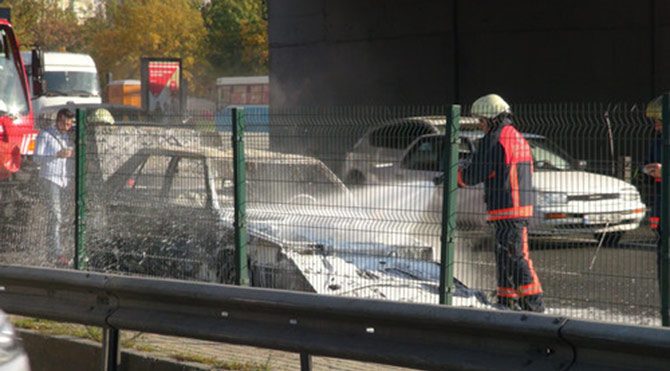 Olay E-5 Karayolu Yenibosna Kuleli'de saat 14.00 sıralarında meydana geldi. Umut Aydın'ın kullandığı 41 HA 123 plakalı otomobil seyir halindeyken motor bölümünde yangın çıktı. Dumanı fark eden Aydın, aracını yol kenarına çekerek kendini dışarı attı. LPG'li olduğu öğrenilen otomobilin ön kısmında başlayan yangın biranda tüm aracı sardı. Alev topuna dönen otomobili söndürmek için olay yerine gelen itfaiye ekipleri müdahalede etti. Otomobil kısa sürede söndürülürken polis ekipleri çevrede güvenlik önlemi aldı. Tamamen yanan otomobil kullanılmaz hale geldi. Çıkan alevler nedeniyle gökyüzü siyah dumanla kaplandı. Yangında kendini araçtan dışarı atan sürücü Aydın, yara almadan kurtuldu.