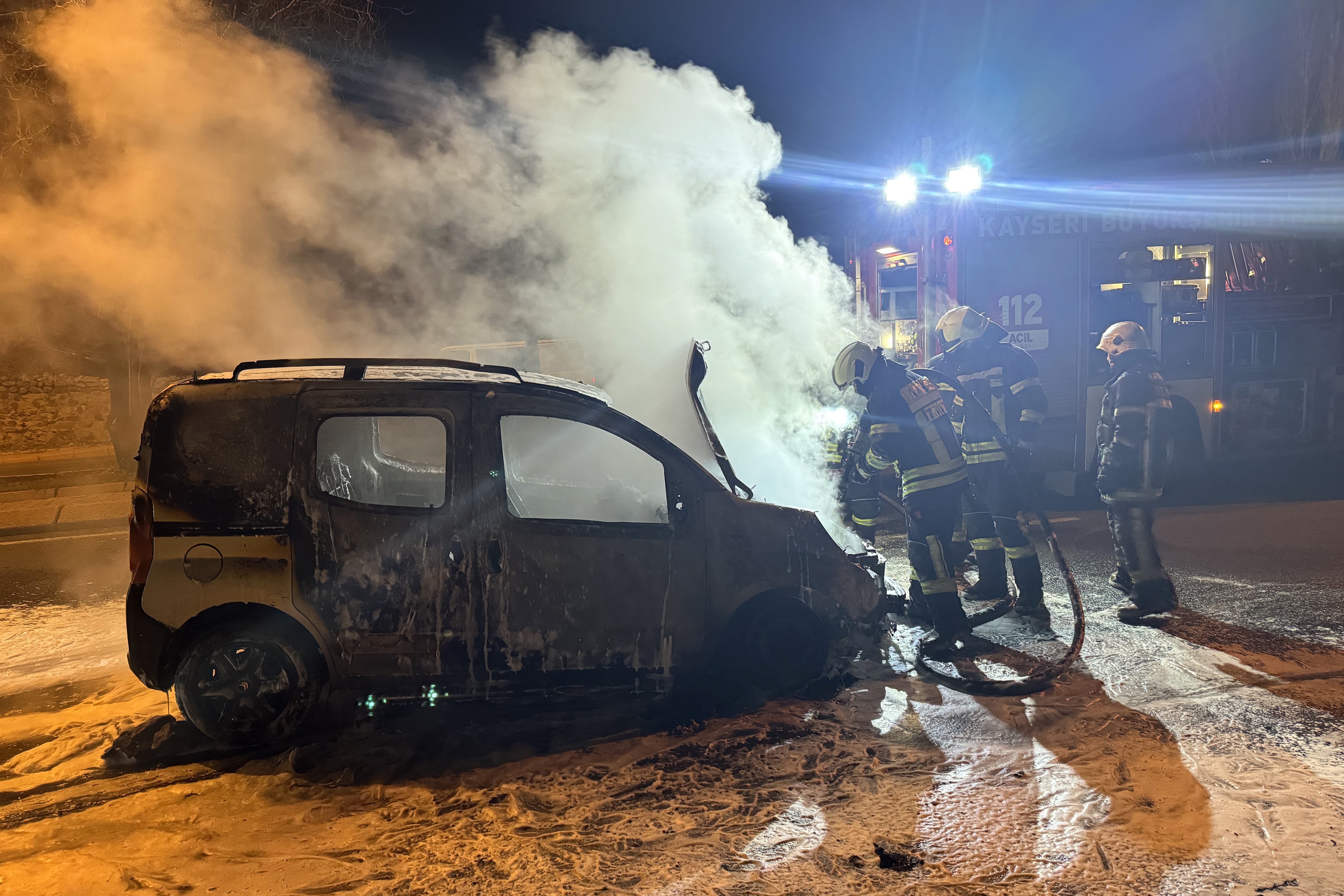 Kayseri'de G.P'nin kullandığı 38 AET 482 plakalı hafif ticari araç, Melikgazi ilçesi Mehmet Özhaseki Bulvarı'nda, hareket halindeyken alev aldı.