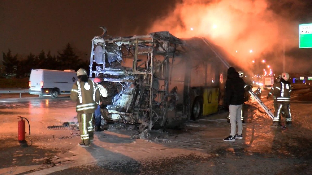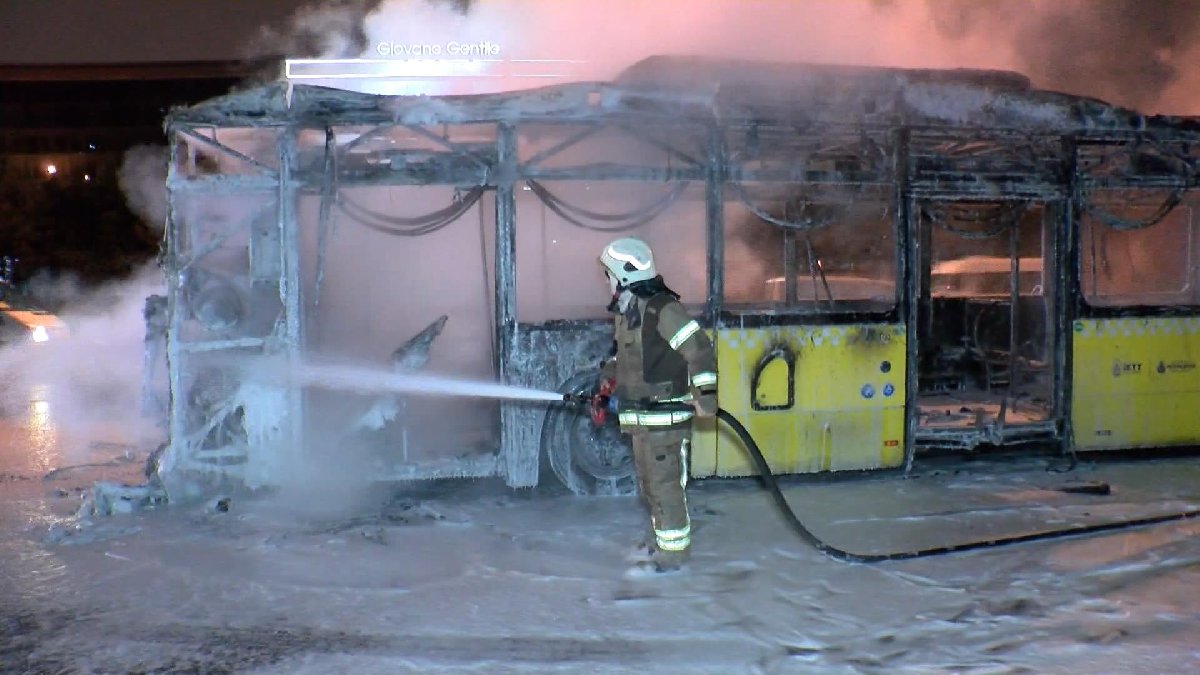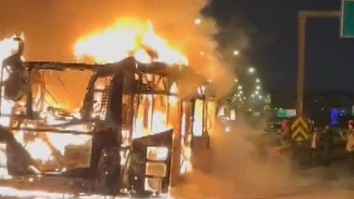 Sık sık patlamaların yaşandığı yangın, itfaiye ekiplerinin müdahalesiyle kontrol altına alınarak söndürüldü. Otobüste yolcu olmadığı öğrenildi. (AA)