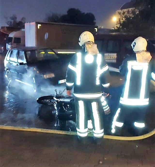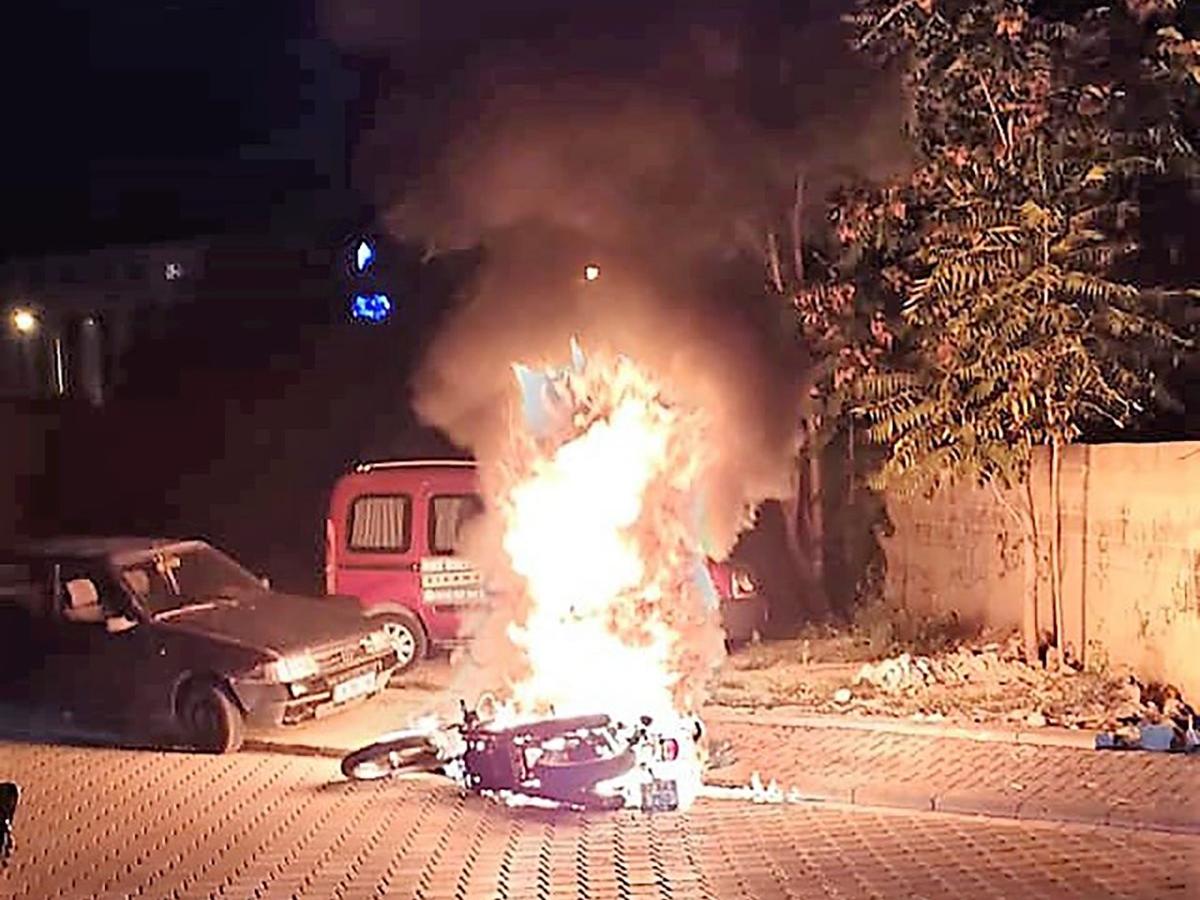 Kısa sürede hızla dumanın yerini bıraktığı alevler, motosikletin her yerini sardı. Sürücü ise son anda alev topuna dönen motosikletten sağ salim kurtulmayı başardı. Çevredekilerin ihbarı üzerine bölgeye çok sayıda itfaiye ekipleri sevk edildi. Olay yerine gelen ekipler, alev alev yanan motosikleti hızlıca söndürmek için çalışma başlattı.