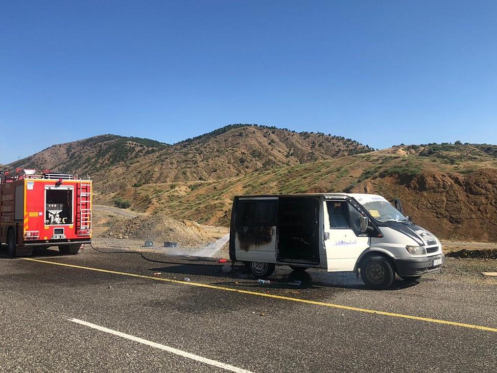 Bingöl’de seyir halindeki bir minibüs yanarak kullanılamaz hale geldi. Olayla ilgili inceleme başlatıldı.