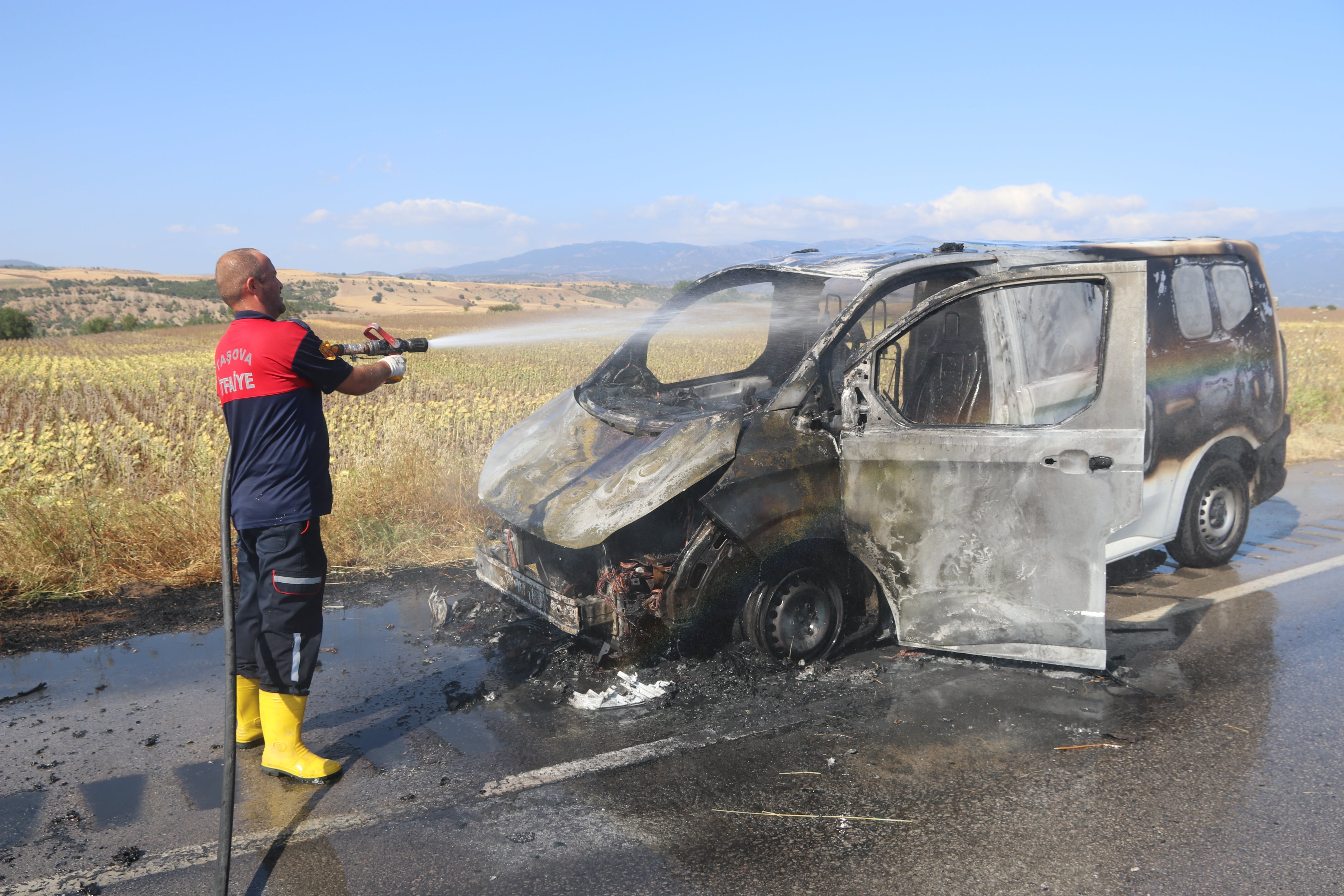 Durumu fark eden sürücü, panelvanı yol kenarına çekti.