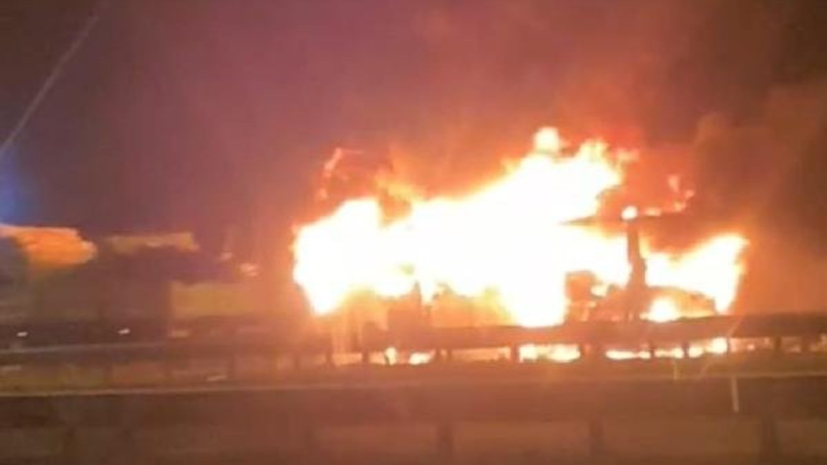 Seyir halindeki yolcu otobüsü alev alev yandı