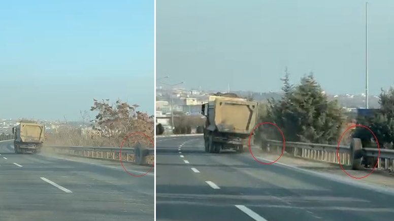 Havalimanı yolu istikametine doğru ilerleyen kamyonun şoförü, durumu fark edip hızla ilerleyen tekerleri yol kenarında tutmaya çalıştı. Tekerlerden biri bir süre sonra yolun sağındaki araziye yuvarlandı.