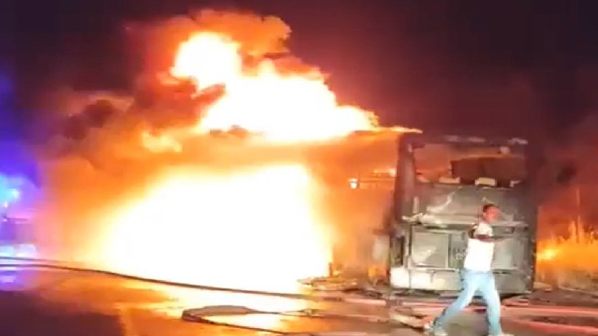 Öte yandan, otobüsün alev alev yandığı anlar ise kameraya yansıdı. Kullanılamaz hale gelen otobüste çıkan yangının çıkış nedeni araştırılıyor. (DHA)