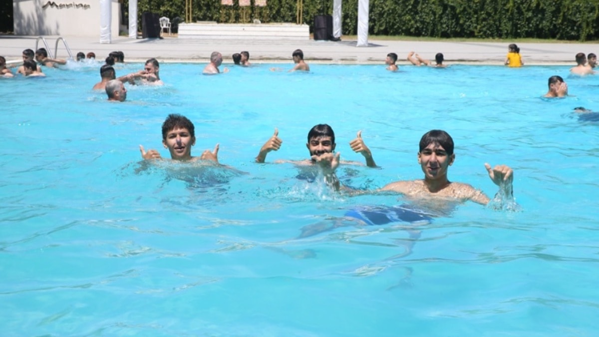 Sıcak havadan bunalan çocuklar da Dulkadiroğlu ilçesinde bulunan havuzlarda vakit geçirdi.