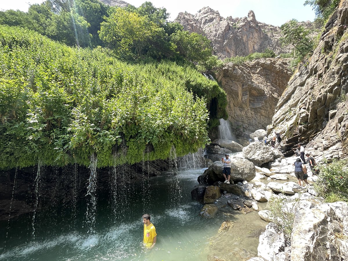 Semih Yıldız da arkadaşlarıyla bölgeye gezmeye geldiklerini belirterek, şelalenin büyüleyici bir güzelliğinin olduğunu ve birçok kişinin burada zaman geçirdiğini dile getirdi. (AA)