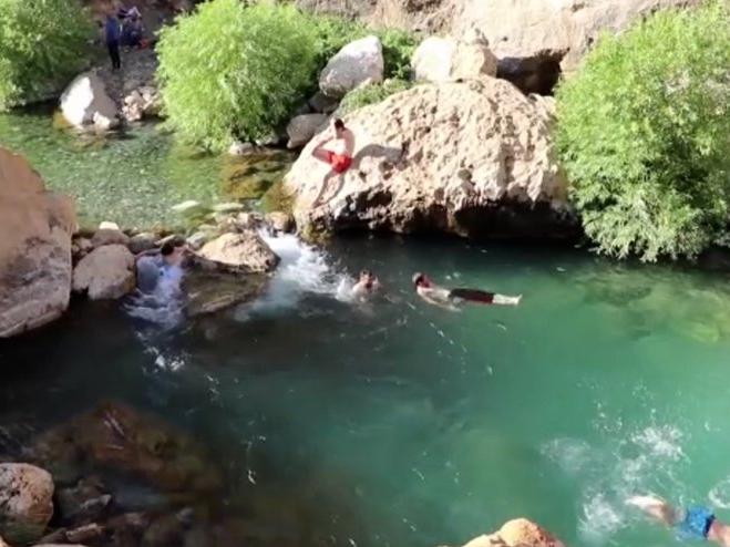 Diyarbakır'ın Çermik ilçesindeki Sinek Çayı, bunaltıcı sıcaklarda serinlemek isteyenleri ağırlıyor.