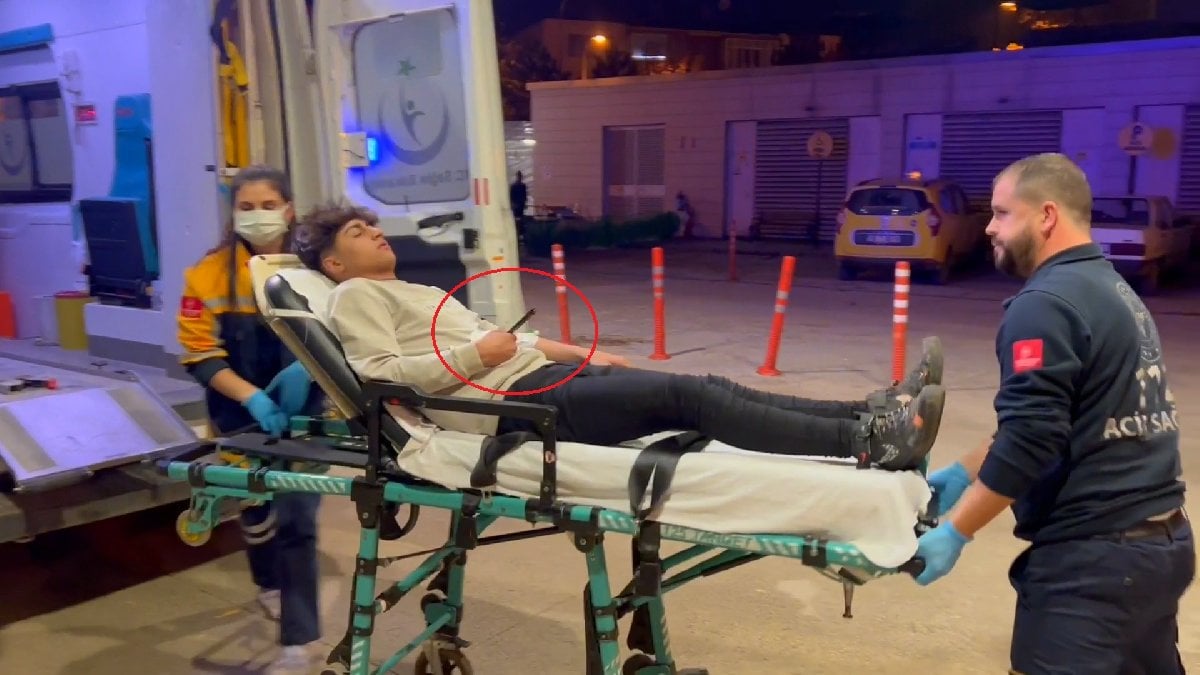 Muhammet A. kanlar içerisinde kalırken, olayı gören çevredekiler genç çocuğun yardımına koştu. İhbar üzerine olay yerine polis ve sağlık ekibi sevk edildi. İlk müdahalesi sağlık ekiplerince olay yerinde yapılan Muhammet A., karnındaki bıçakla İnegöl Devlet Hastanesine kaldırıldı. Polis ekipleri ise olay yerinde inceleme yaptı.