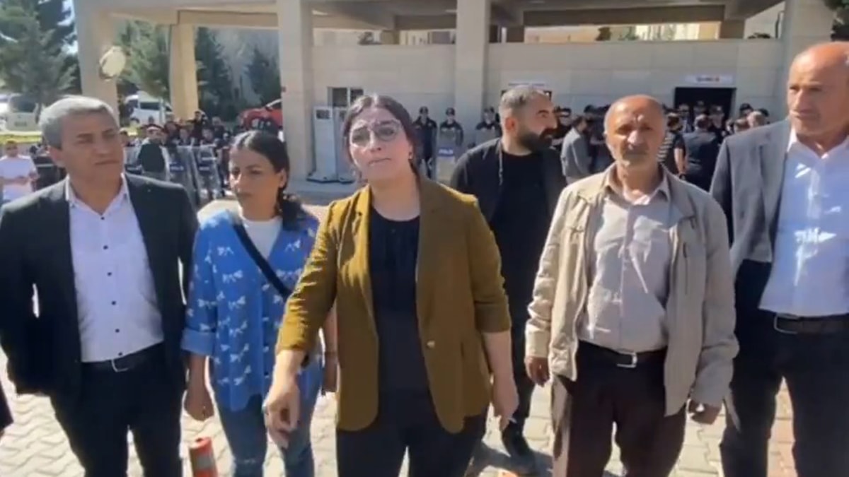 DEM Milletvekili Sabahat Erdoğan Sarıtaş ve beraberindeki partililer, verilmesi beklenen mazbatalar hakkında bilgi almak için İlçe Seçim Kurulu’nun olduğu adliye binasına girmek istedi.