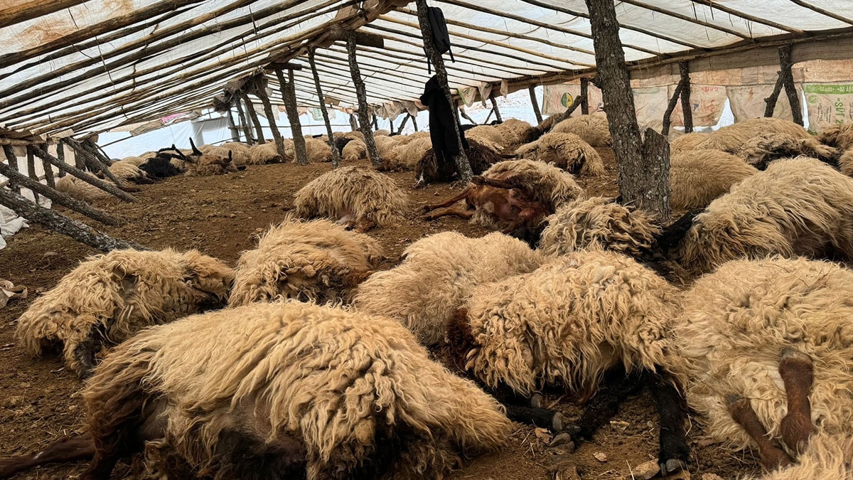 Siirt’in Eruh ilçesinde Menal Timurtaş’a ait 150 koyun, gece bırakıldığı çadır ahırda havasız kalarak öldü.