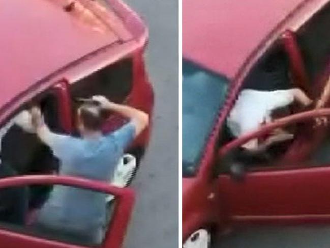 Elindeki silahın kabzasıyla karşı tarafa şiddet uygulayan sürücünün görüntüleri yol üzerinde ikamet eden bir vatandaş tarafından cep telefonu ile kaydedildi.