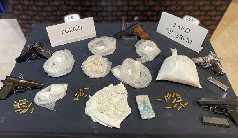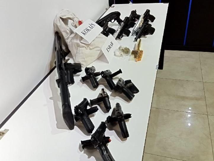 Toplam 19 farklı ikamete yapılan operasyonlarda ise 1 kilogram 754 gram kokain, 127 adet sentetik ecza, 140 gram metamfetamin, 250 gram skunk ve esrar karışımı madde, 16 adet capatagon, 93 gram marihuana, 15 adet ruhsatsız silah, 2 adet av tüfeği ve değişik çaplarda çok sayıda fişek ele geçirildi.