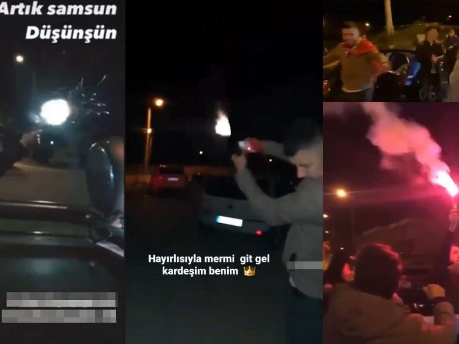 Meşaleler eşliğinde araç konvoyu yapan gençler, camlardan sarkarak ellerindeki tabancaları defalarca ateşledi. Cep telefonuna yansıyan görüntülerde, bir gencin ise tabancayı yatık tutarak ateşlemesi korkuttu. Gencin ateş ettiği bölgede evlerin olduğu görüldü.
