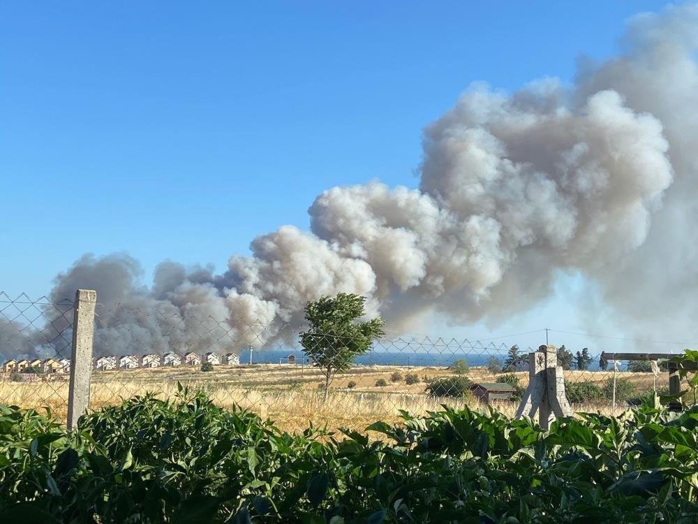 Alevler kısa sürede büyüyerek bütün tarlayı sararken, köyde büyük panik yaşandı. İhbar üzerine olay yerine çok sayıda itfaiye ekibi sevk edildi.