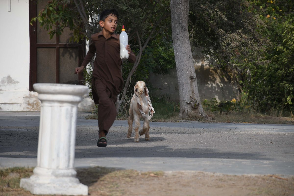 Pakistanlı keçi yetiştiricisi Mohammad Hasan Narejo’ya ait olan çiftlikte dünyaya gelen keçi yavrusu Simbi’nin özel ağılına sıcaklardan bunalmaması için vantilatör bile yerleştirilmiş.