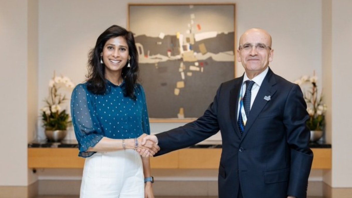 Gopinath görüşmenin fotoğraflarını X hesabından, "Türkiye Maliye Bakanı Mehmet Şimşek ile dünyanın görünümü üzerine mükemmel sohbet" notuyla paylaştı.