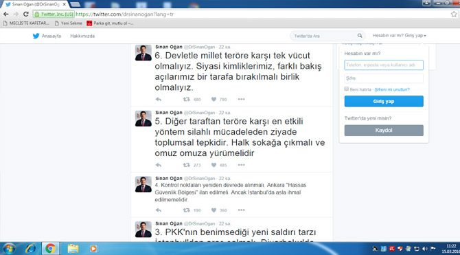 MHP’nin kurucu Genel Başkanı merhum Alparslan Türkeş’in kızı Çağrı Türkeş’le birlikte yapacağı basın toplantısını intihar saldırısı nedeniyle erteleyen Oğan sosyal medya üzerinden paylaşımlarda bulundu. Oğan Ankara’nın “Hassas Güvenlik Bölgesi” ilan edilmesini istedi ve şu mesajları verdi: