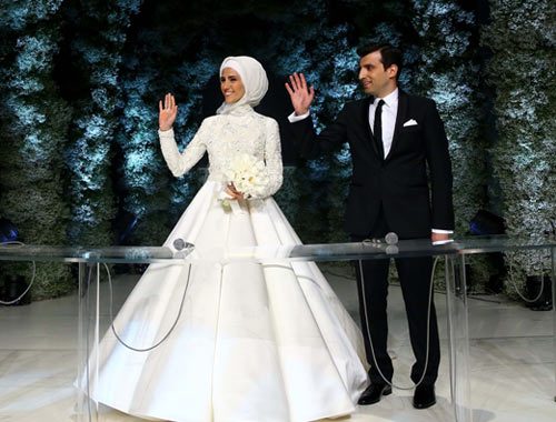 14 Mayıs Cumartesi günü dünya evine giren isimlerden bir tanesi de Sümeyye Erdoğan idi. Sezon modasının aksine kabarık bir gelinlik tercih etse de modayı çift renk trendinden yakalamış.