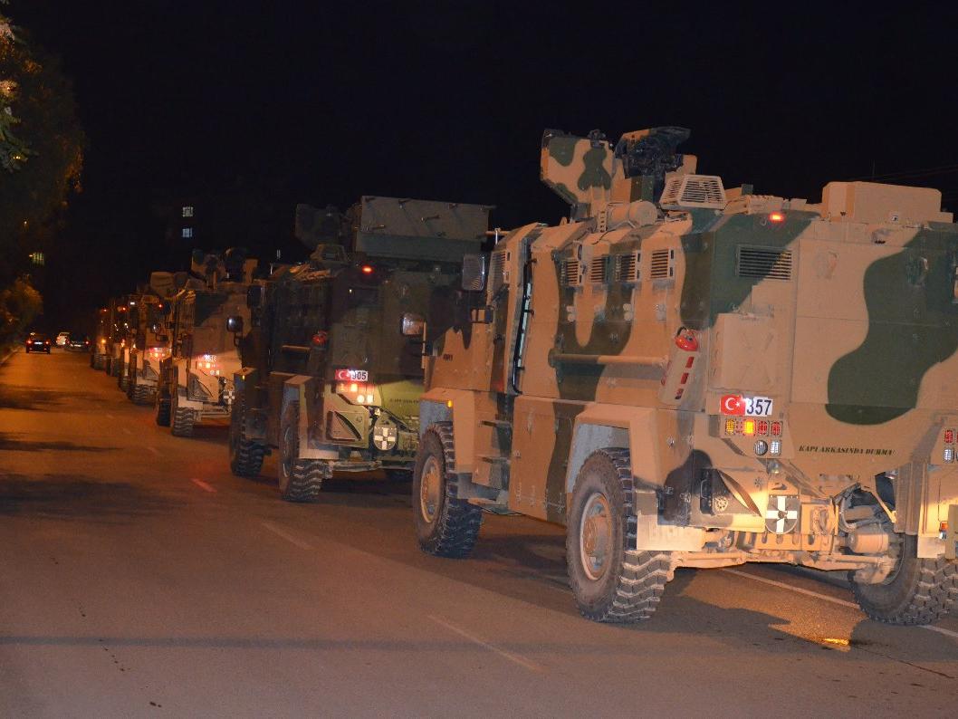 Türkiye'nin çeşitli birliklerden gönderilen askeri personel ve zırhlı personel taşıyıcı askeri araç konvoyu, gece Hatay'ın Kırıkhan ilçesinden Suriye sınır hattına doğru hareket etti.