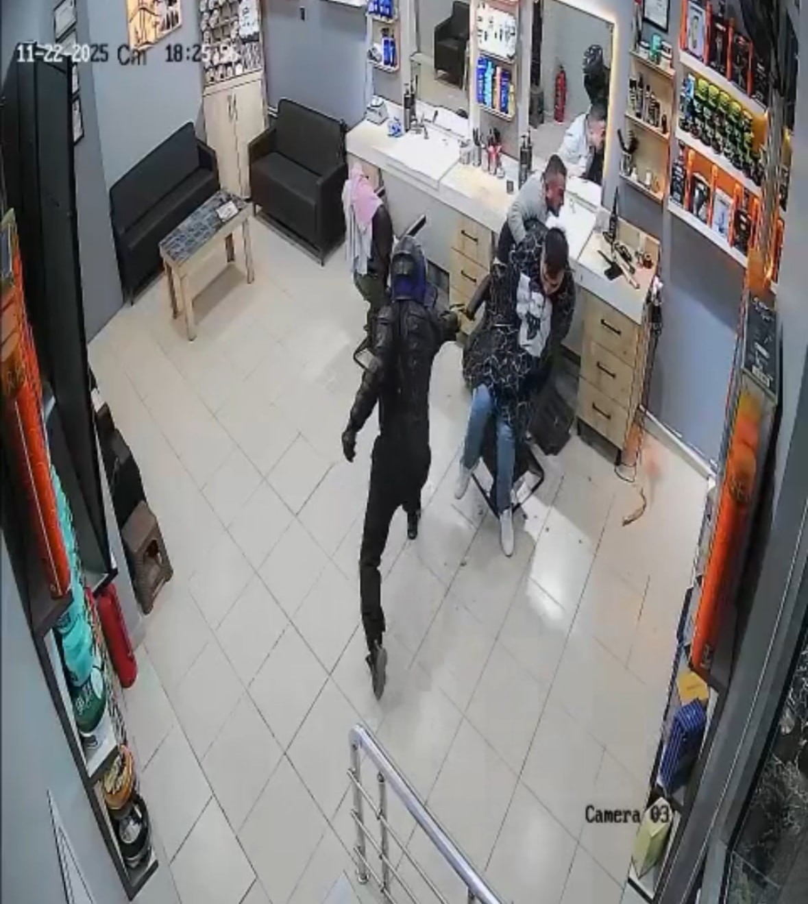 Diğer yandan olay, güvenlik kamerasına yansıdı. Görüntülerde; dükkana giren kasklı saldırganın, elinde tabanca ile berbere peş peşe ateş açtığı, berberin ise müşterisinin arkasına sığındığı anlar yer aldı.