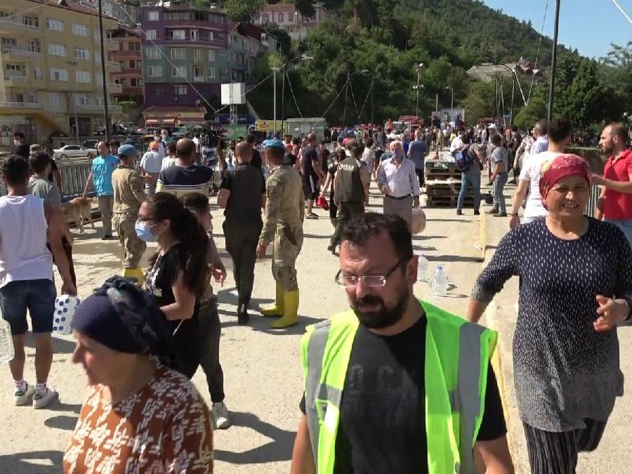İlçenin iki yakasına ulaşımın sağlandığı hasarlı köprünün üzerinde erzak yardımları için yaklaşık 200 metrelik insan zinciri oluşturuldu.