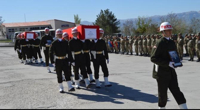 Şehitlerin Türk bayrağına sarılı tabutlarının getirilmesinin ardından başlayan tören, öz geçmişlerinin okunması ve duaların yapılmasıyla devam etti. Duanın ardından Uzman Çavuş Nezir Pırnarcı'nın cenazesi Manisa'ya, Uzman Çavuş Sedat Düzgün'ün cenazesi ise Çorum'a gönderilmek üzere helikopterle Şerafettin Elçi Havalimanı'na götürüldü.