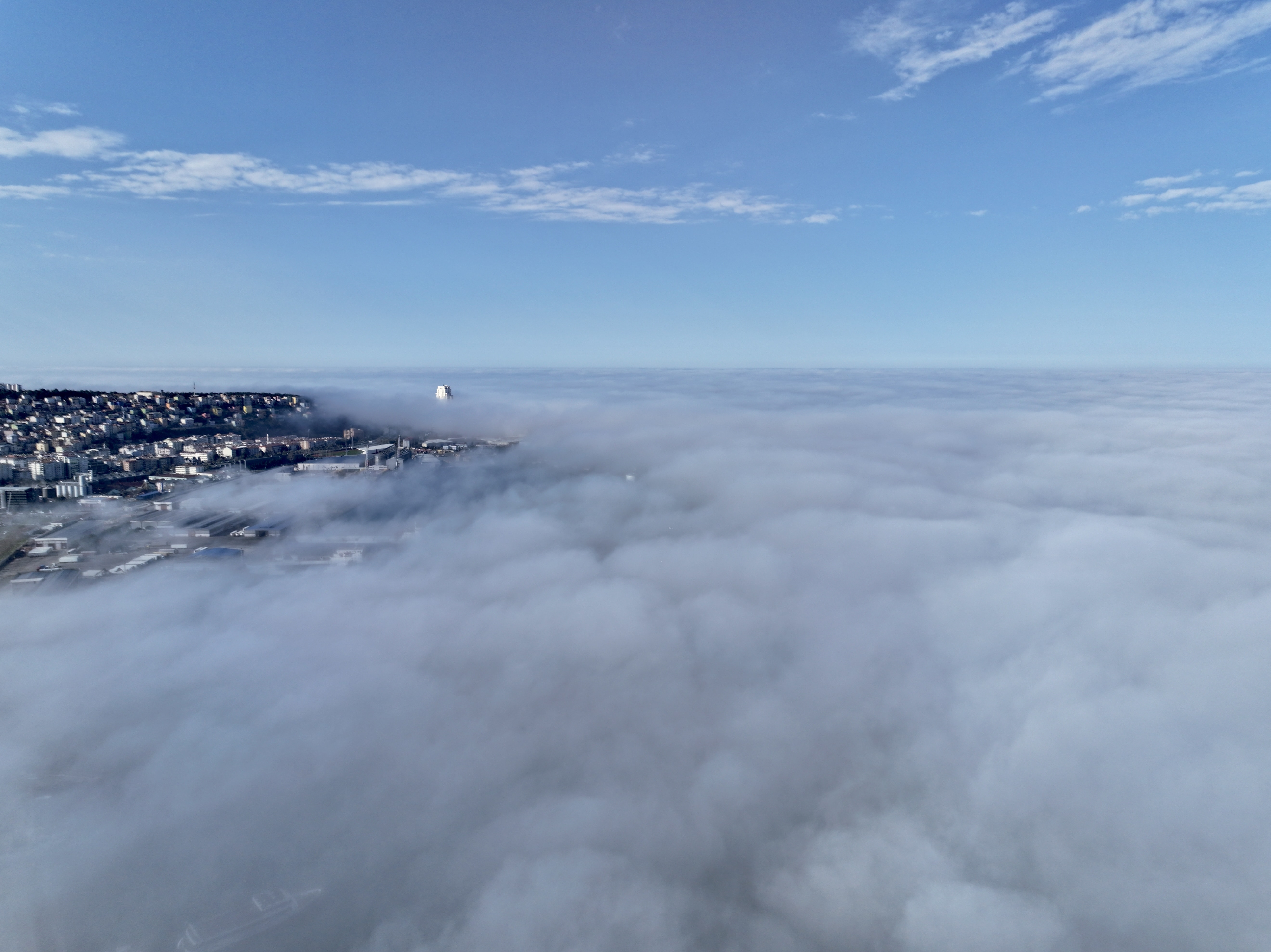 Karadeniz'in üzerini kaplayan "sis denizi" dronla görüntülendi.