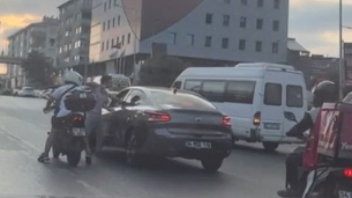 Yaşananlar çevredeki bir vatandaş tarafından cep telefonu kamerasıyla kaydedildi. Görüntülerde, saldırganın aracın yanına geldiği ve camdan içeriye art arda yumruk attığı anlar yer alıyor.