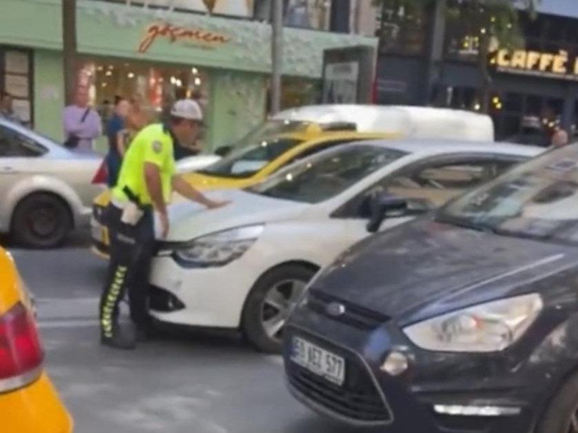 Trafik kontrolünde durmayan sürücünün aracını trafik polisinin üzerine sürerek kaçması cep telefonu ile görüntülendi. Görüntülerde, trafik kontrolü yapan trafik ekipleri bir aracı durdurdu. Aracından inmeyen sürücü, otomobilini önündeki trafik polisinin üzerine sürerek hızla olay yerinden kaçtı. Ezilme tehlikesi geçiren trafik polisi ise kaçan aracın peşinden koştu.