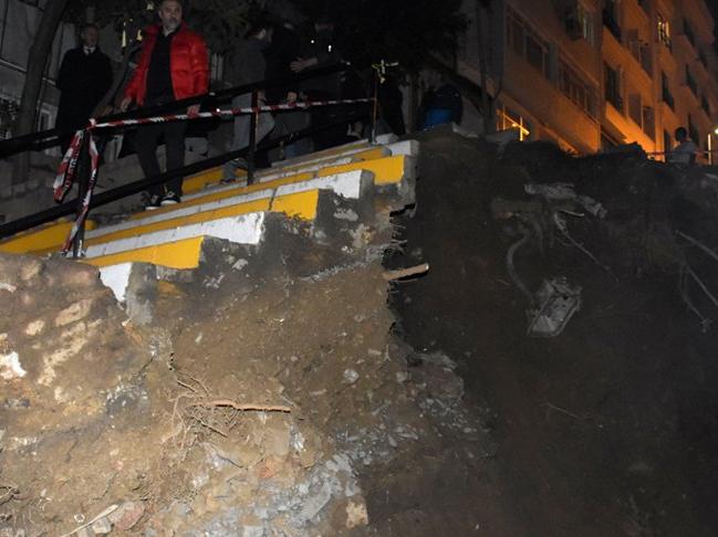 Duvarın yıkılması sırasında elektrik hattı zarar görürken, sokağın yarısı elektriksiz kaldı. Sokak sakinlerini sokağa döken çökmenin ardından olay yerine itfaiye ve polis ekipleri sevk edildi. Merdivenin altındaki toprak kaymasının devam etmesi nedeniyle inşaatın bulunduğu alan zabıta tarafından güvenlik şeridi ve demir barikatla kapatıldı. Bu sırada, inşaatın müteahhidi olduğu söylenen bir kişi ile şikayetçi olacaklarını belirten sokak sakinleri arasında tartışma yaşandı. Tartışma zabıtanın araya girmesiyle sona erdi.