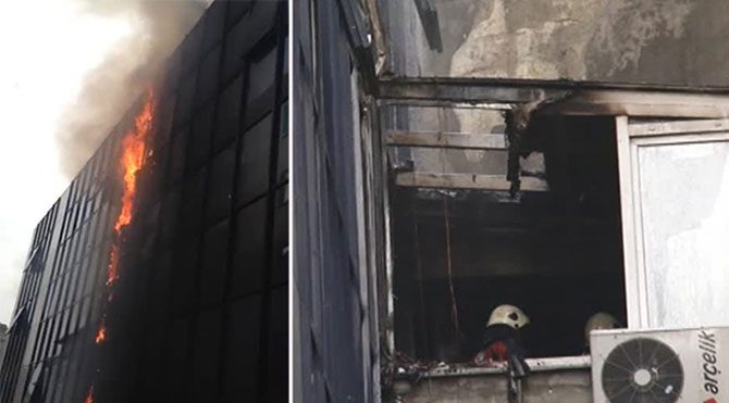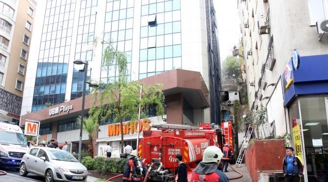 YANGIN CEP TELEFONUNDAPlazadan alevlerin çıktığını gören vatandaşlar yangını cep telefonu ile görüntüledi. Görüntülerde plazanın alt katında başlayan yangının binanın üst taraflarına doğru yayıldığı görülüyor. Mahalle sakini Ahmet Üzülmez, ?Burası bir işyeri. Bir işyeri daha var aşağısında, market falan var. Doğalgaz kaçağı dediler ama kesin belli değil. Faciadan da dönülmüş olabilir. Çalışanlar vardı içeride. Cumartesi olduğu için o yönden biraz kurtardılar" dedi. İtfaiye ekipleri, yangının çıkış nedenini araştırıyor.