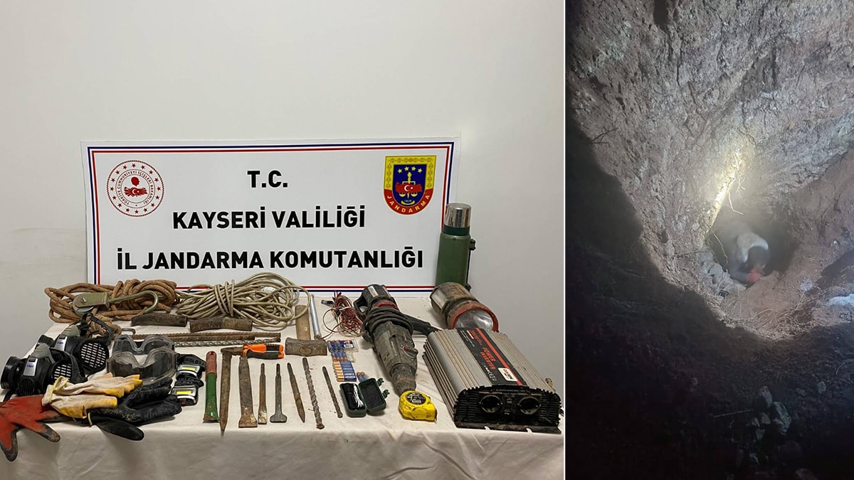 Bu kapsamda düzenlenen operasyonda define aradığı belirlenen M.Y., M.B., E.B. ve C.B. suçüstü yakalandı. 25 metre uzunluğundaki kazı alanında 1 adet invertör, 3 adet akü, 15 metre kablo, 1 adet darbeli matkap, 6 adet matkap ucu, 2 adet gaz maskesi ve çeşitli malzemeler ele geçirildi.
