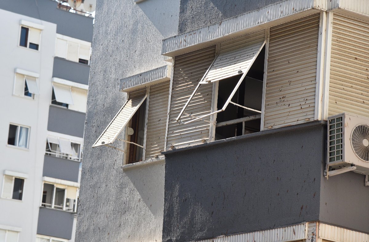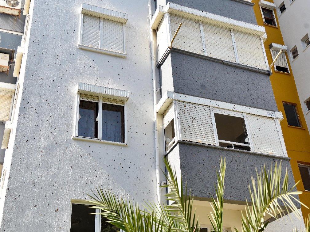 Bina sakinleri, akşam saatlerinde balkon ve pencerelerinin panjurunu kapatıp, park halindeki otomobillerinin üzerini örterek önlem almaya çalıştı.
