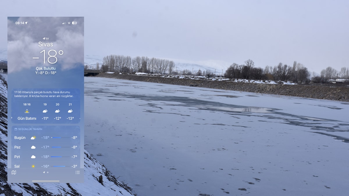 Tarihi Eğri Köprü civarındaki bölümlerde nehrin yüzeyi buz pistini andırdı. Meteoroloji verilerine göre; kentte soğuk hava dalgasının gelecek hafta da etkisini sürdürmesi bekleniyor.