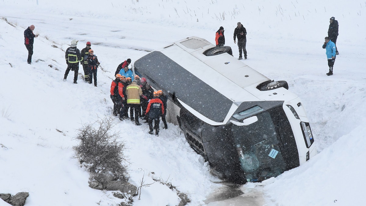 Buzlanma nedeniyle kontrolden çıkarak devrildiği değerlendirilen otobüstekilerin,