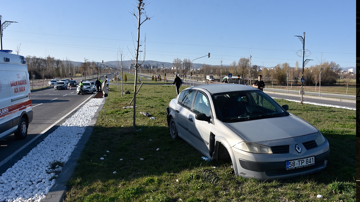Alınan bilgiye göre Yenişehir Mahallesi, Recep Tayyip Erdoğan Bulvarı üzerinde seyir halinde olan 52 yaşındaki Şakir Keskin idaresindeki 58 TP 841 plakalı otomobile, arkasından gelen Ata Ateş yönetimindeki 58 BE 877 plakalı otomobil çarptı. Çarpmanın şiddetiyle refüje çıkan Keskin idaresindeki otomobilin sol ön tekeri de koptu.