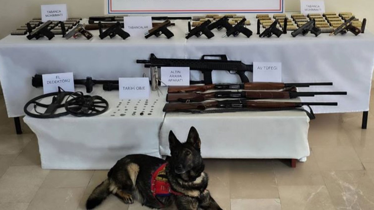 Ekiplerce adreslerde yapılan aramlarda 7 ruhsatlı tabanca, 3 kurusıkı tabanca, 16 şarjör, 3 ruhsatsız av tüfeği, 3 ruhsatlı av tüfeği, 4 bin 902 tabanca fişeği, 145 av tüfeği fişeği, 2 dedektör ve tarihi eser niteliği taşıyan 39 obje ele geçirildi, 9 zanlı gözaltına alındı.