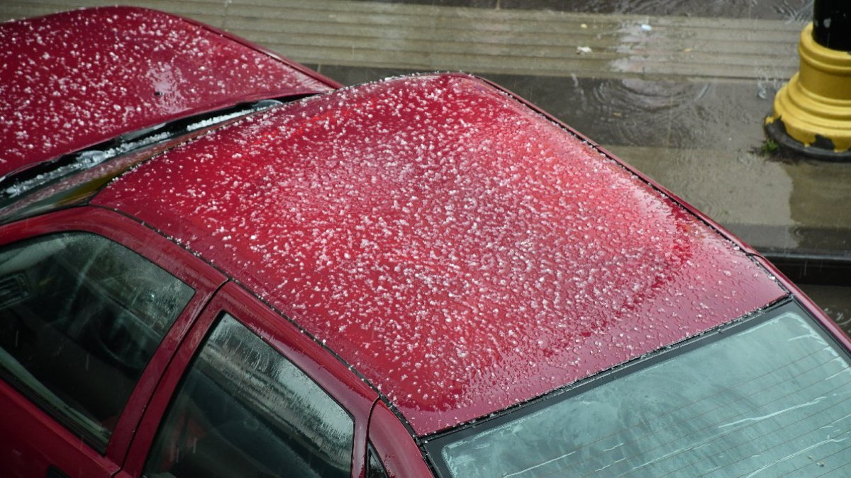 Kısa süreliğine etkili olan dolu, kentteki araçların üstünü kapladı.