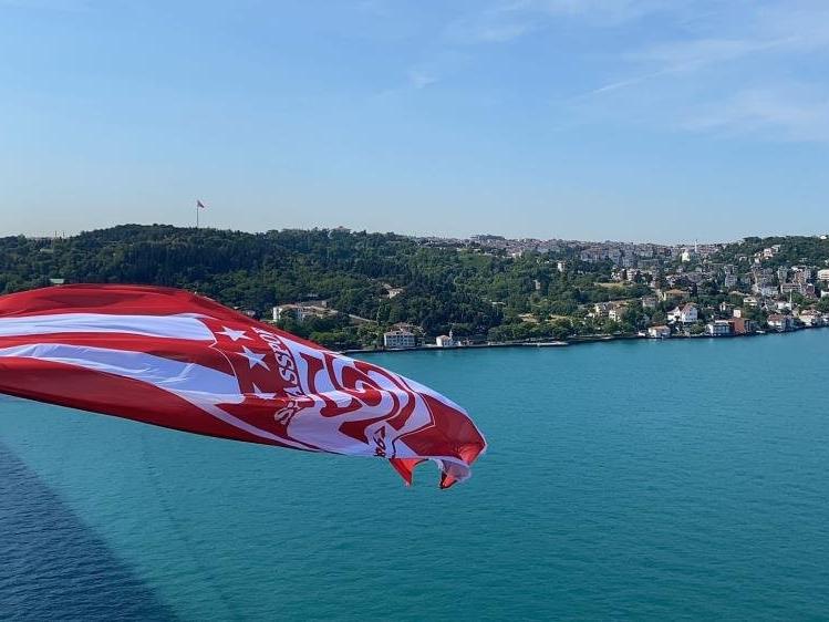 60. Türkiye Kupası şampiyonu Sivasspor’un bayrağı, 15 Temmuz Şehitler Köprüsü’ne asıldı.